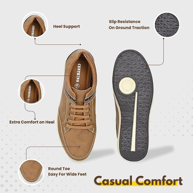 Centrino Men’s Causal Sneakers | Sneakers for Men | Lace-Up Design | Rounded Front | Branded Casual Shoes with Soft Cushioned Insole