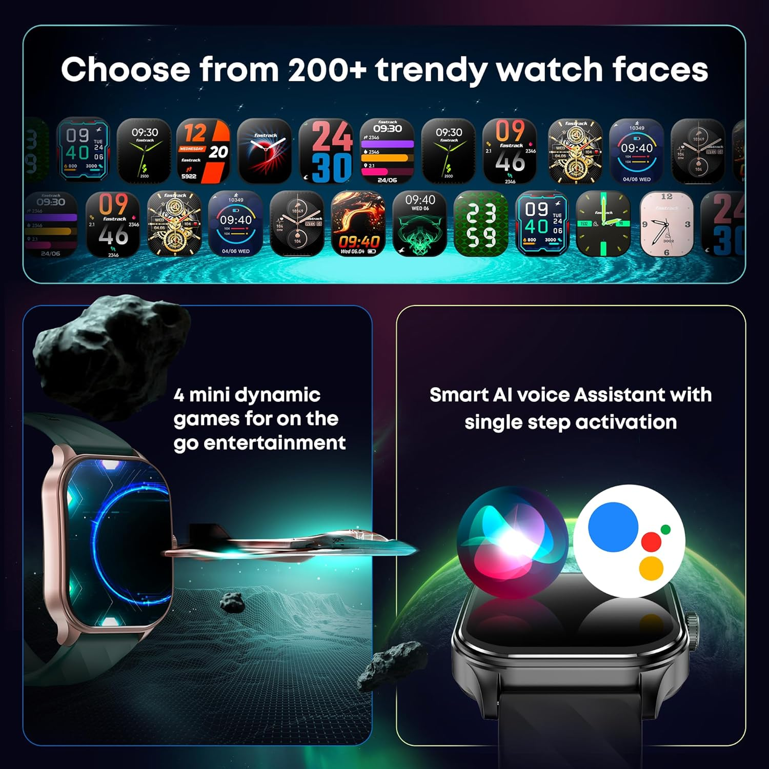 - Advanced 110+ Sports Modes, 200+ Watchfaces, In-Built Games, AI Voice Assistant and many more handy features at a single tap; Health Monitoring with Auto Stress monitor, 24×7 Heart Rate, Sleep Tracker, Spo2 and Women’s Health