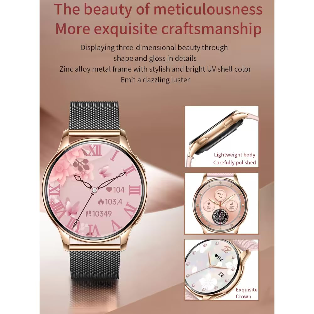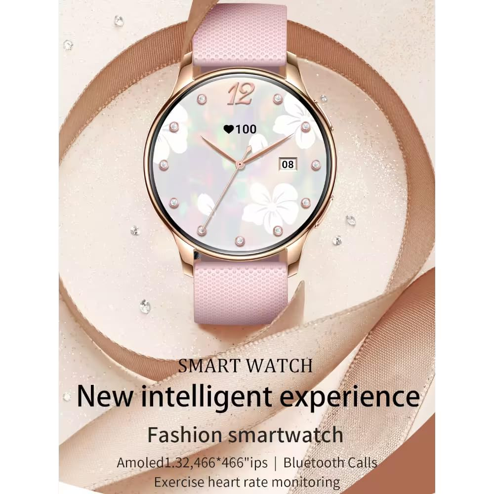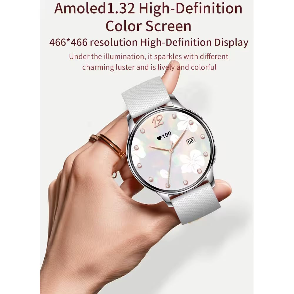 - DISPLAY FEATURES: 💍 1.32-inch AMOLED screen delivers crisp visuals in an elegant, 10mm slim, and lightweight design perfect for feminine wrists. Replaceable band with 100+ uniquely designed watchfaces make sure that you always have looks matching to every occassion. AMOLED Screen supports beutiful Always On Display.