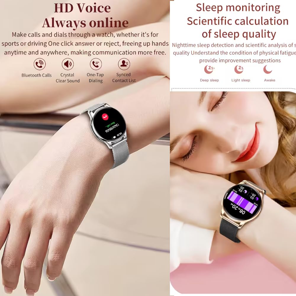 - HEALTH MONITORING: 🏃♂️ Elegance Meets Precision. Push your limits with a powerhouse sports smartwatch built for every athlete. With 100+ sport modes, it’s ready for everything from intense HIIT sessions to peaceful yoga flows—no setup required. Keep tabs on your body’s every signal with real-time monitoring of blood oxygen, heart rate, blood pressure, calorie and sleep patterns, giving you the insights to train smarter and recover better. This is where data drives peak performance.