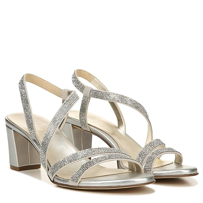 All-day comfortable womens crystal embellished dress heeled sandals with slingback strap